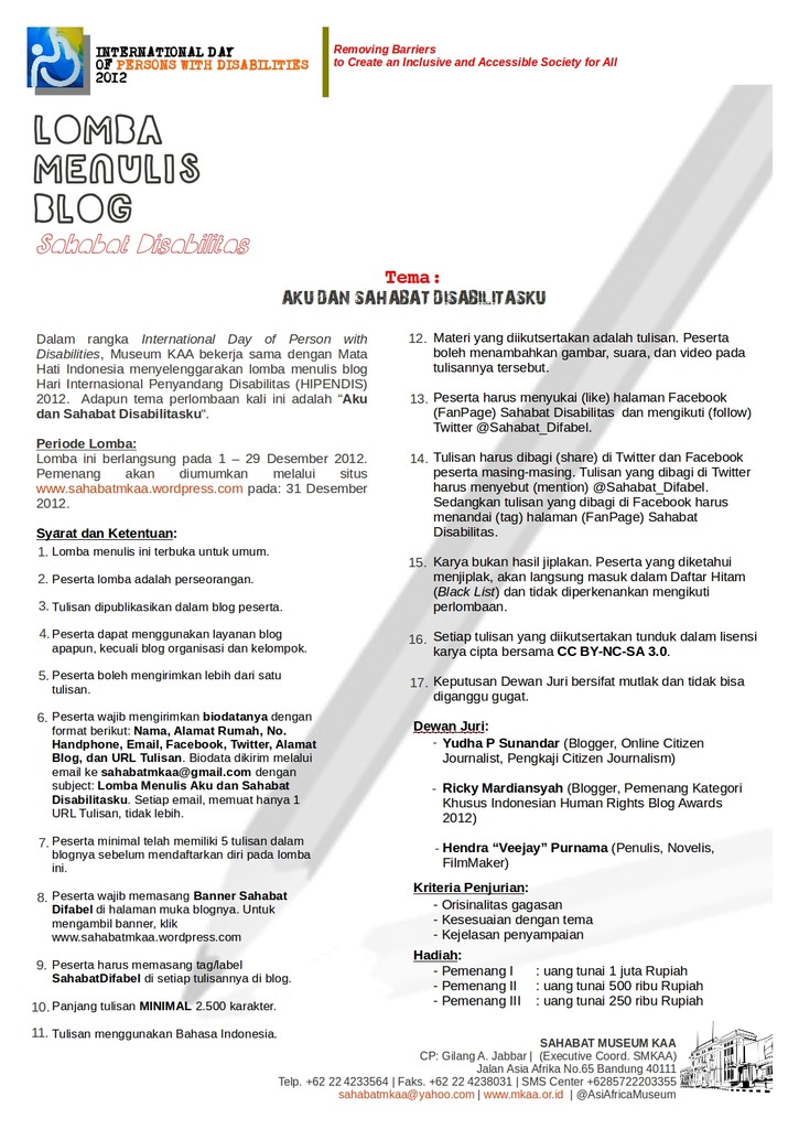 Sumber: http://sahabatmkaa.wordpress.com/2012/12/02/lomba-blog-aku-dan-sahabat-disabilitasku dan twitter: @asiafricamuseum